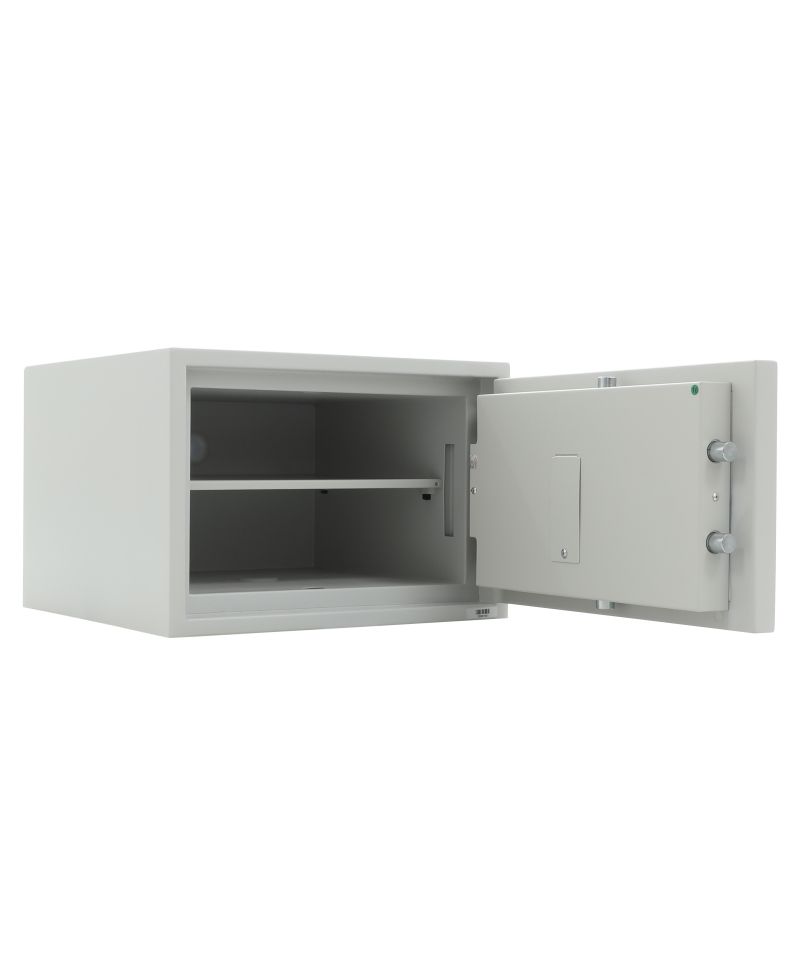 Този сейф е сертифициран по европейските стандарти и е устойчив на взлом със сертификат ECB-S по EN 14450 (Европейски стандарт) клас S2. Оборудван е с електронна ключалка клас B /по EN 1300 / PS 310, което осигурява допълнително ниво на сигурност и защита.