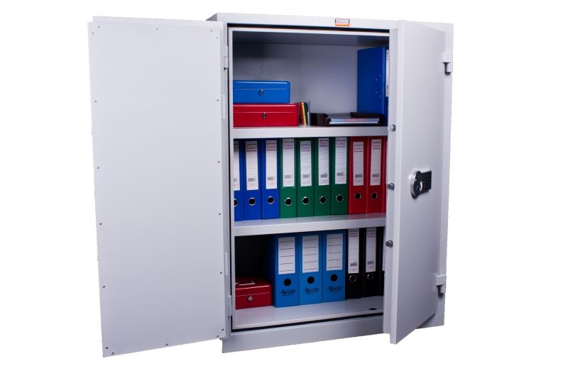 Този усилен метален шкаф от Промет е идеалното решение за съхранение на важни документи и ценности, като ги предпазва от кражба. Подходящ е за държавни и обществени институции, бизнес сгради, офиси, архивохранилища, складове, училища, болници и частни домове.